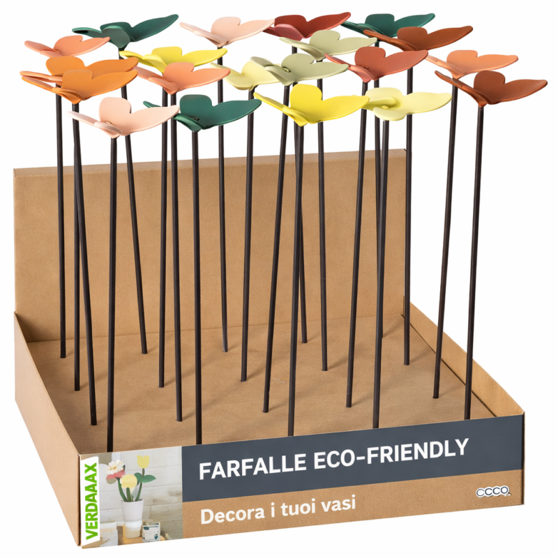 Οι οικολογικές πεταλούδες είναι βιώσιμα διακοσμητικά που έχουν σχεδιαστεί για να ομορφαίνουν κήπους, μπαλκόνια, βάζα και χώρους πρασίνου . Κατασκευασμένες από οικολογικά υλικά , προσθέτουν χρώμα και χαρά σεβόμενες το περιβάλλον, μετατρέποντας κάθε γωνιά του κήπου σε έναν μικρό φυσικό παράδεισο . Χαρακτηριστικά :